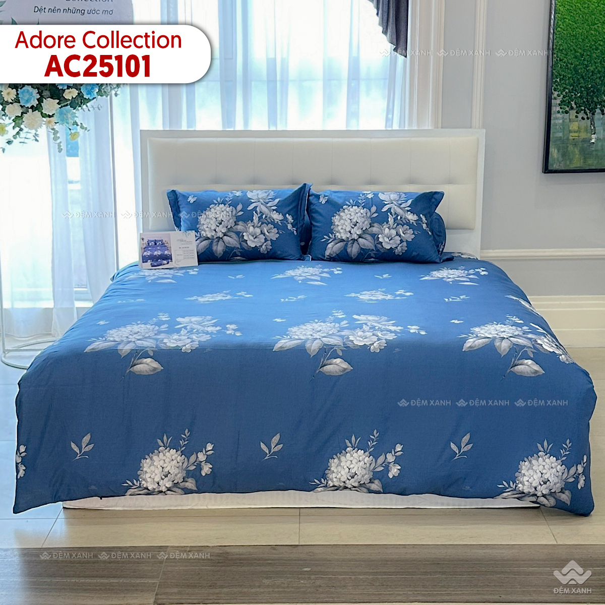 - Họa tiết cẩm tú cầu sự chân thành, thịnh vượng, tôn lên nét đẹp dịu dàng cho gian phòng ngủ.